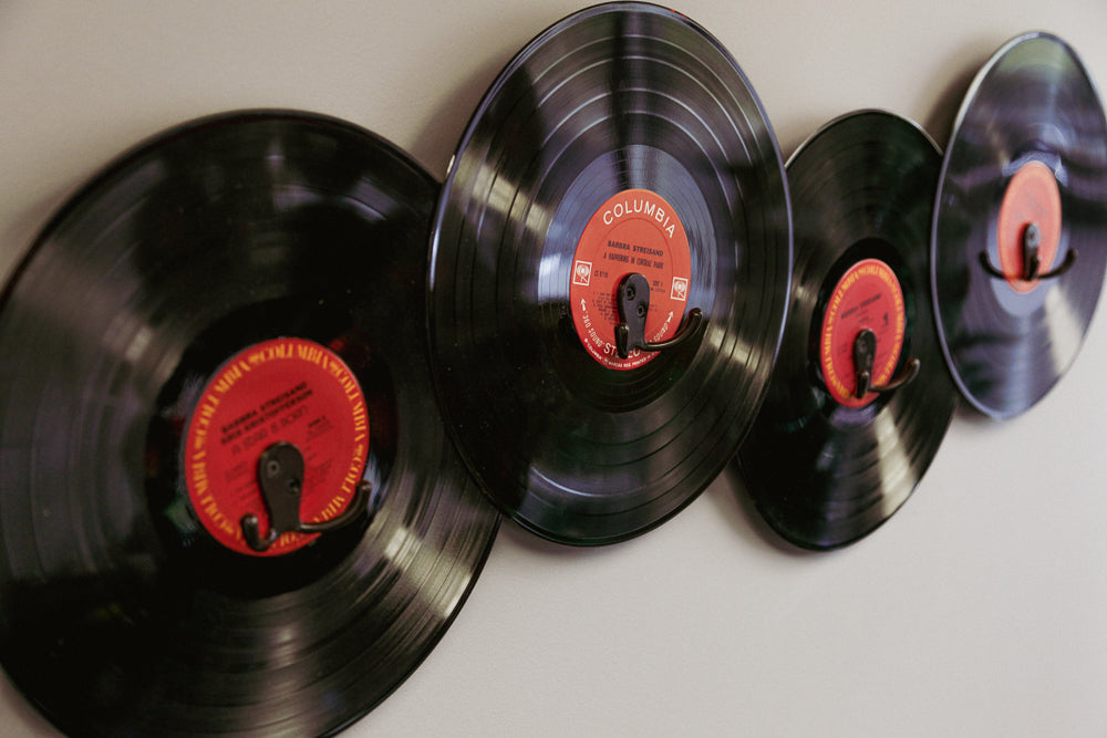 • records are sealed and screwed into 5/8" thick wooden base (painted black) for support